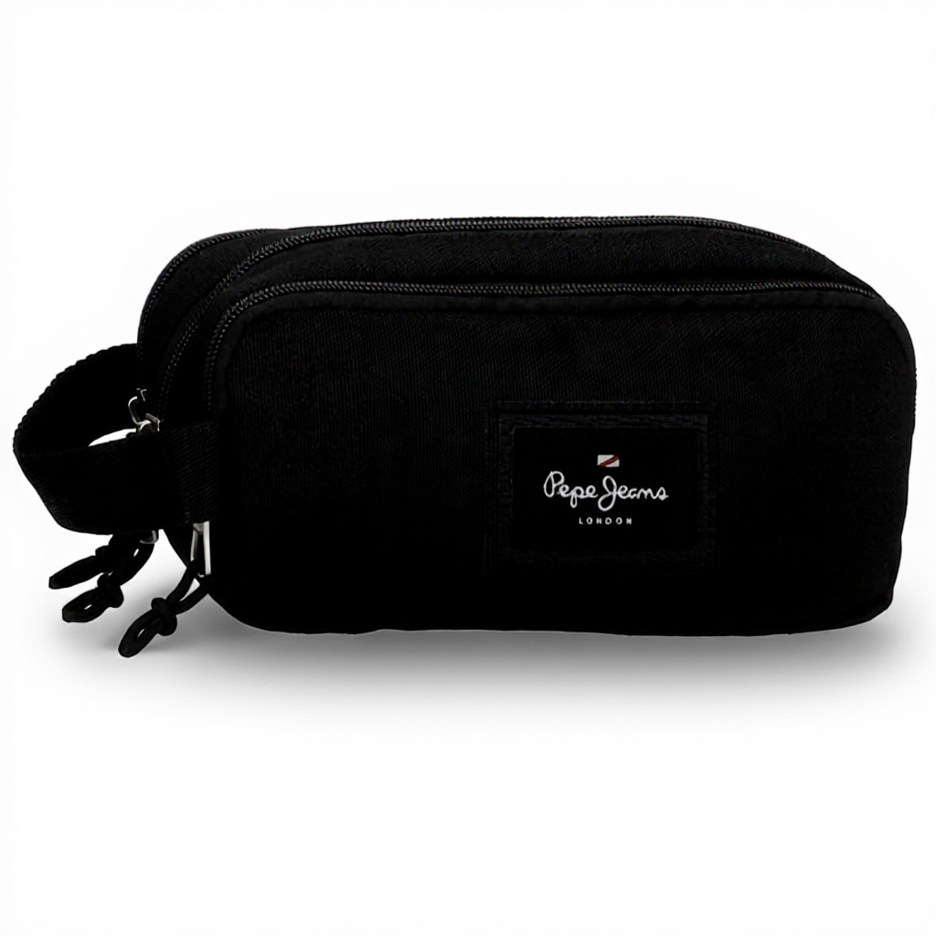 Le dimensioni dell’astuccio sono 22 cm di lunghezza, 10 cm di altezza e 9 cm di profondità, rendendolo adatto per essere riposto comodamente in zaini, borse o cartelle. Il materiale principale è il poliestere, noto per la sua leggerezza e facilità di pulizia. Prodotto da Joumma Bags per il marchio Pepe Jeans, è disponibile nel colore nero, versatile e adatto a qualsiasi contesto.