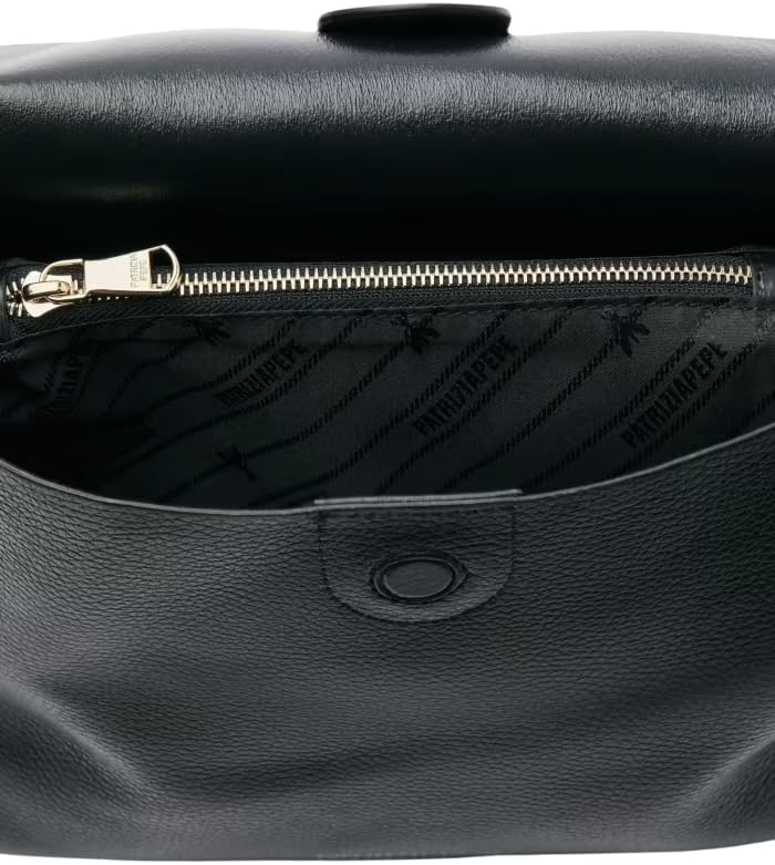 Questa borsa a tracolla Patrizia Pepe è realizzata in pregiatissima pelle di vitello martellata resinata, che garantisce durabilità e un aspetto raffinato. Presenta un logo embossed “PATRIZIA PEPE FLY” per un tocco di autenticità, una tracolla in pelle regolabile con fibbia per un comfort personalizzato e una chiusura con calamita per una maggiore sicurezza. La pochette interna removibile, dotata di moschettoni e chiusura zip, offre un’organizzazione ottimale degli oggetti personali.