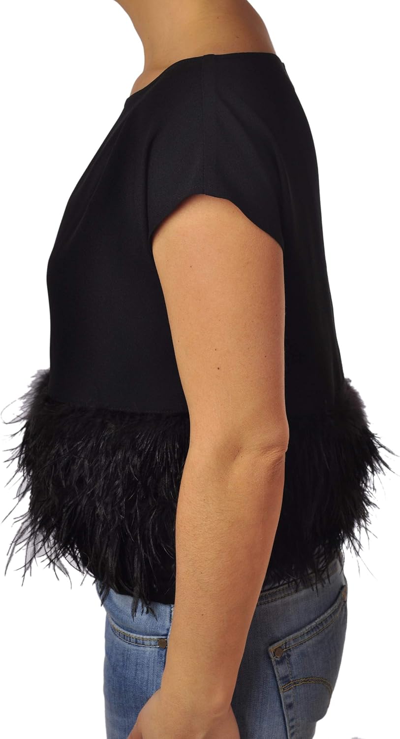 Questa casacca blusa di Patrizia Pepe presenta un design ampio a scatolina che dona un aspetto elegante e strutturato. Realizzata senza maniche, è arricchita da inserti a balze di piume che aggiungono un tocco di raffinatezza e movimento. I dettagli di alta qualità e la cura nella lavorazione la rendono un capo distintivo nel guardaroba femminile.