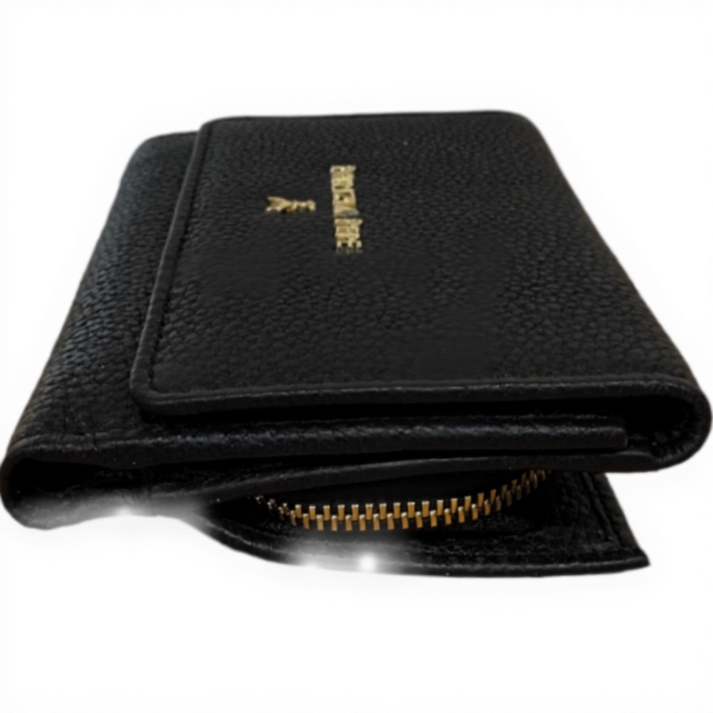 Questo portafoglio Patrizia Pepe combina un design classico con materiali di alta qualità. Realizzato in pelle di vitello, offre una finitura liscia e resistente, con un compartimento principale per 8 carte e uno spazio dedicato per le monete. La chiusura sicura e la struttura compatta assicurano protezione e facilità d’uso.